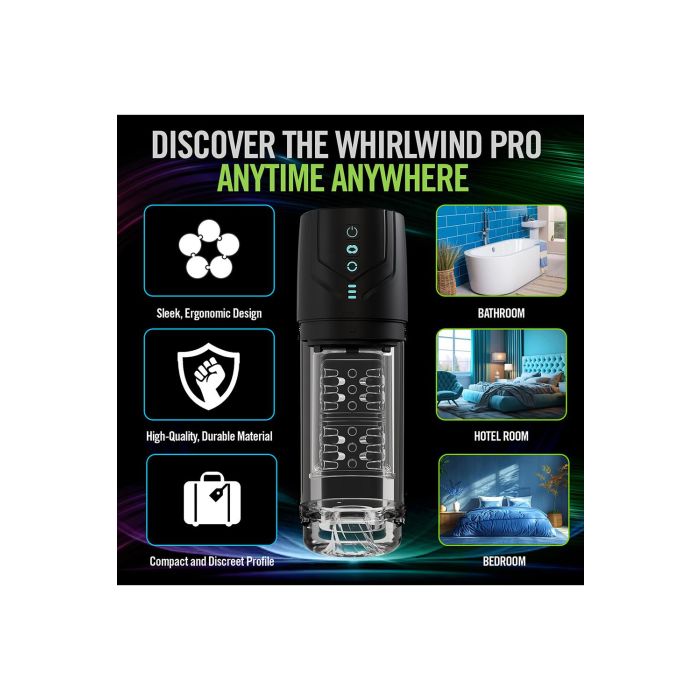 Ervaar een ongeëvenaarde sensatie met de Whirlwind Pro, een automatische mannelijke masturbator die geavanceerde technologie en innovatieve ontwerpen combineert voor een uitzonderlijke ervaring. Dit apparaat heeft een discreet en gestroomlijnd ontwerp, waardoor het niet alleen functioneel is, maar ook esthetisch aantrekkelijk. Met maar liefst 7 geavanceerde rotatiestanden en 7 krachtige zuigstanden biedt de Whirlwind Pro een scala aan snelheden en patronen die volledig aanpasbaar zijn aan de voorkeuren van elke gebruiker. De 360° rotatietechnologie omringt de penis in een wervelwind van genot, terwijl de automatische zuigstanden is uitgerust met een veiligheidsventiel, zodat je de zuigkracht eenvoudig kunt regelen met een druk op de knop.