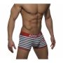 De AD142 Sailor Boxer van Addicted heb jij gauw 'in ieder stadje een ander schatje'. Het is een low-cut square model dat zeer comfortabel zit doordat Addicted gebruik heeft gemaakt van de beste materialen. Het streepjespatroon in navy blauw met wit en de rode accenten maken deze boxershort helemaal af. Het Addicted logo is zowel aan de voorkant als aan de achterkant aangebracht op de rode tailleband. Verder zijn de zomen rondom de benen gemaakt in het rood en aan de voorkant links is in het rood het cijfer "20" aangebracht. Speel, verleid en trek de aandacht met deze Sailor Boxer van Addicted.Highlights AD142 Sailor Boxer:
