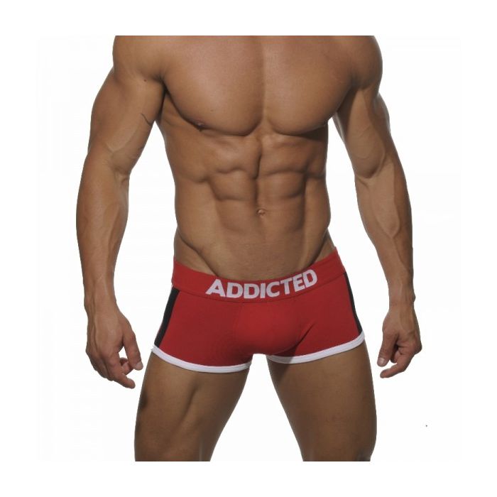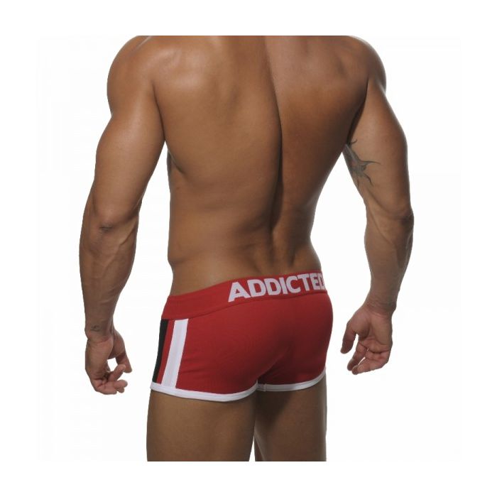 Deze AD158 Pack Up Boxer van Addicted heeft als hoofdkleur Rood met witte zomen rondom de benen die aan de zijkanten doorlopen tot aan de tailleband.