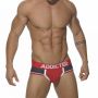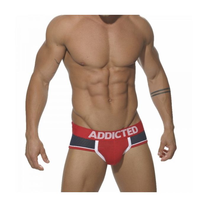 De AD191 Mesh Brief van Addicted is door zijn materialen combinatie een must-have voor iedere zelfverzekerde man. Hij is rondom gemaakt van elastische semi-transparante mesh stof, welke ademend is en een lust voor het oog. De pouch is gemaakt van katoen zodat draagcomfort wordt gegarandeerd. Door de bijzondere kleurencombinaties kan de AD191 Mesh Brief zomaar jouw favoriete underwear worden. Deze AD191 Mesh Brief heeft als hoofdkleur Navy Blauw. De tailleband met het Addicted logo erop, de pouch en de zomen rondom de benen zijn gemaakt in de kleur Rood. Als extra accent zijn er ook nog witte zomen rondom de pouch aangebracht. Verdere verkrijgbare kleuren zijn Zwart, Rood en Wit.- Type: Brief / Slip
