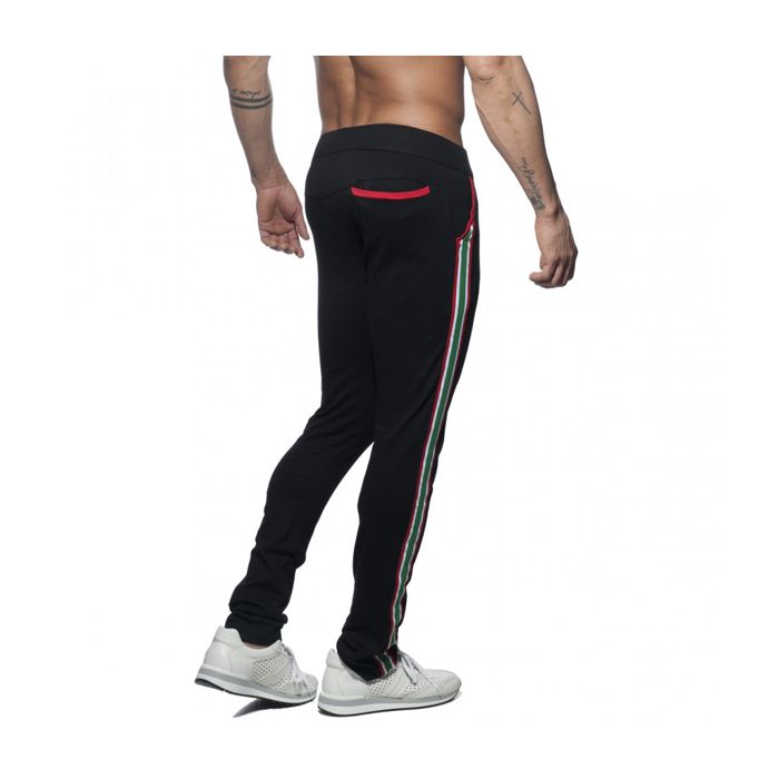 - Bijzonderheden: Steekzakken, kontzak, brede tailleband, sportieve strepen