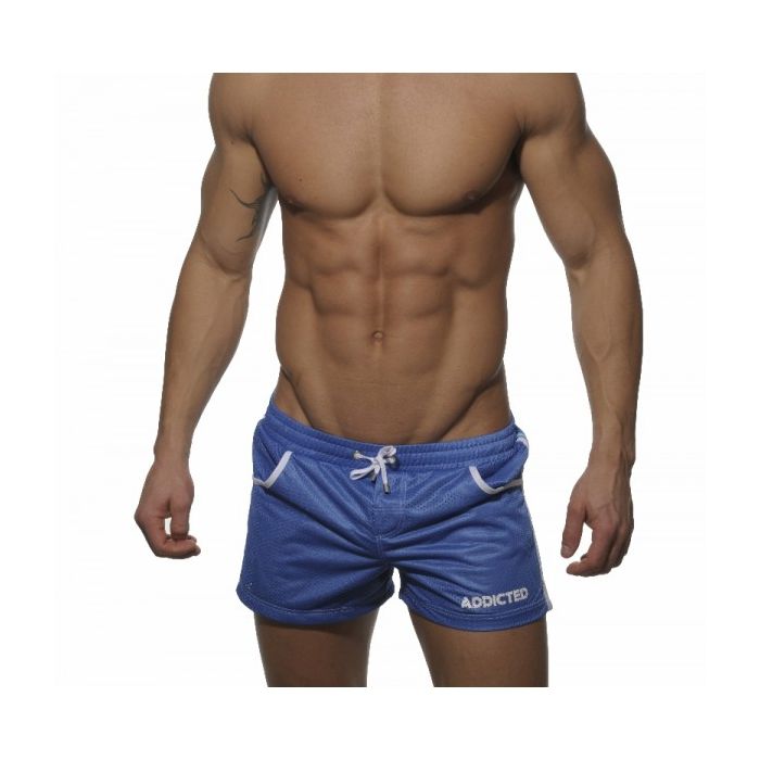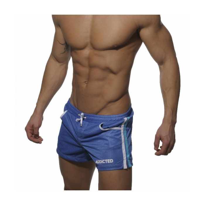 De ADS004 Mesh zwemshort heeft een dubbele laag mesh stof. Hierdoor oogt hij sexy zonder iets prijs te geven. Deze low-cut zwemshort van Addicted is sneldrogend en zeer comfortabel te dragen. Het trekkoord in de tailleband houdt de ADS004 stevig op zijn plaats. Als extra accent heeft Addicted twee front pockets aangebracht. Aan de zijkanten zijn twee verticale strepen aangebracht in contrasterende kleuren. Deze ADS004 Mesh zwemshort heeft als hoofdkleur Royal Blauw. De banen aan de zijkanten hebben de kleuren wit en aqua, waarbij de witte baan doorloopt als zoom van de zakken. Het Addicted logo is aangebracht op de linker pijp. Verder verkrijgbare kleuren zijn Zwart, Navy Blauw, Rood en Wit.- Type: Zwemshort
