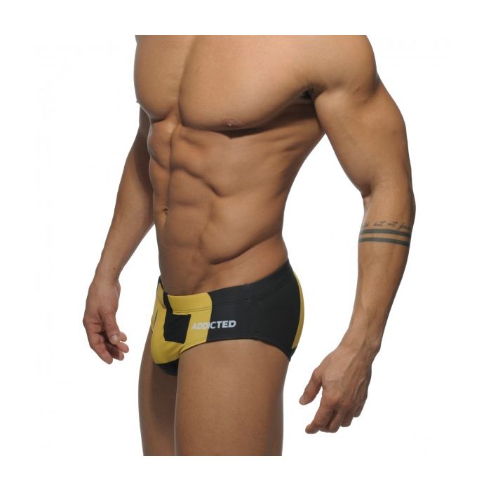 Deze ADS045 zwembroek heeft de kleur zwart met het Addicted XL logo in de kleur geel.