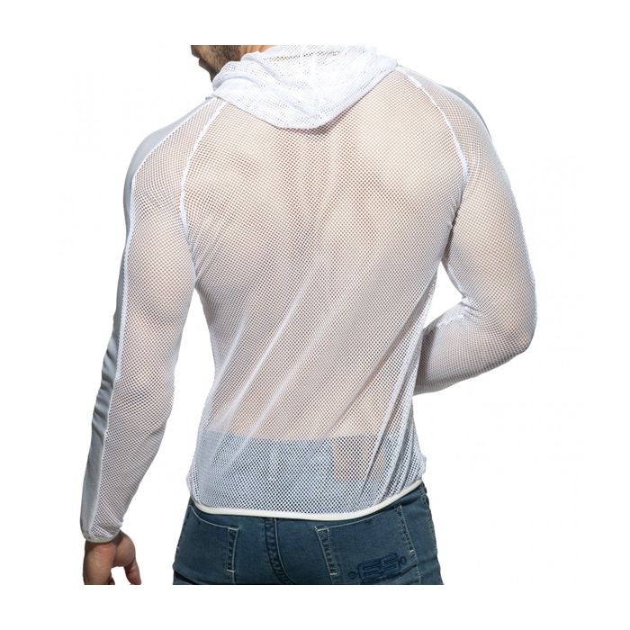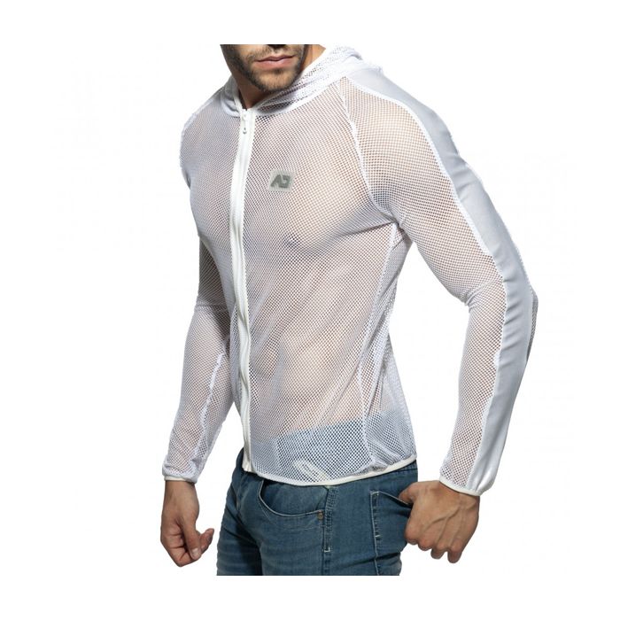 Ga voor een opvallende party look met het Addicted Black & White Mesh Jacket - Wit. Dit vest gemaakt van wit, fijnmazig mesh zal onder UV-licht erg goed te zien zijn. De capuchon en de wetlook afwerking op de lange mouwen maken het vest lekker speels en stijlvol. Laat de rits los and show off those abs in het Black & White Mesh Jacket van Addicted!Eigenschappen Black & White Mesh Jacket: