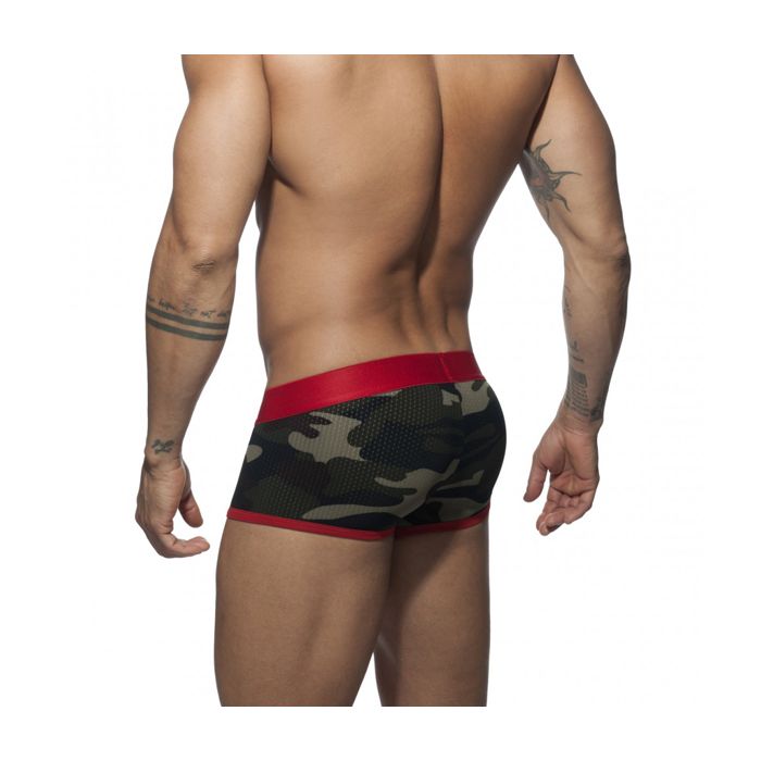 Zoek jij een comfortabele en luchtige boxershort? Dan is de Camo Stripe Boxer - Rood van het merk Addicted zeker iets voor jou! Deze boxershort is gemaakt van licht en luchtig microvezel materiaal met micro mesh structuur. Het micromesh heeft een stoere camouflage print en is afgewerkt met contrasterende rode zomen aan de pijpjes en op en rond de comfortabele buidel. Ook de elastische tailleband is rood, is afgewerkt met een silicone Addicted logo en zit lekker laag om je heupen.