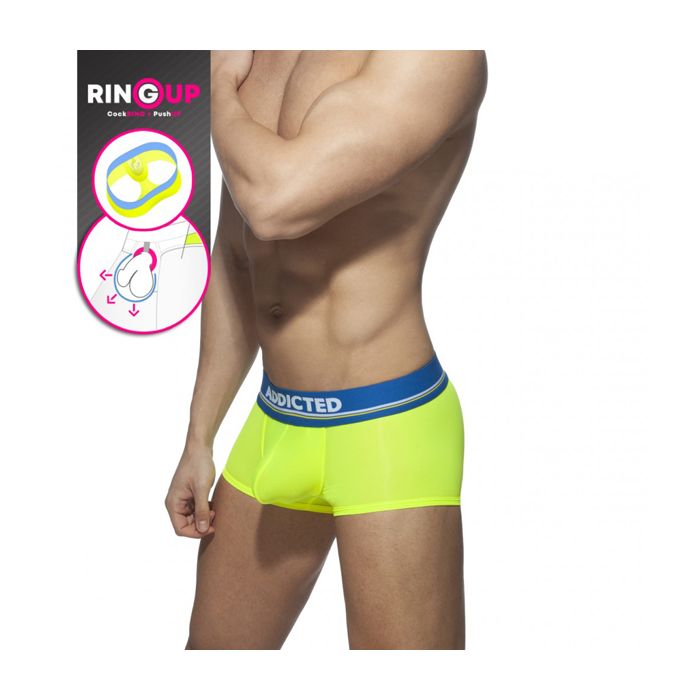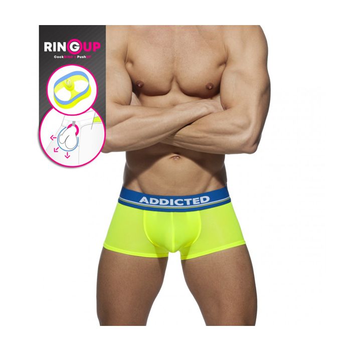 Deze te gekke neon gele boxershort van Addicted is uitgerust met een uitneembare cockring. De Cockring C-Through Boxershort draagt hierdoor bij aan een vollere erectie. Hoe geil is dat!