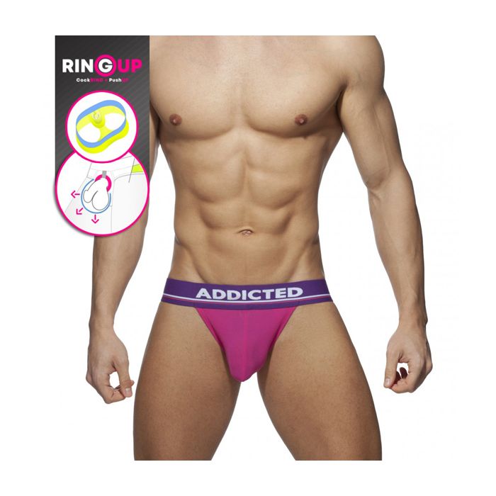 Een vollere erectie bereik je met de Cockring C-Through Jockstrap van Addicted. In deze knal roze gekleurde jock tref je een uitneembare cockring. De roze stof is licht doorschijnend, zo is jouw mannelijkheid goed zichtbaar. De jockstrap heeft een lage, elastische tailleband in een paarse kleur. De achterkant is open en elastische banden geven de billen een lichte lift.Eigenschappen Cockring C-Through Jockstrap: