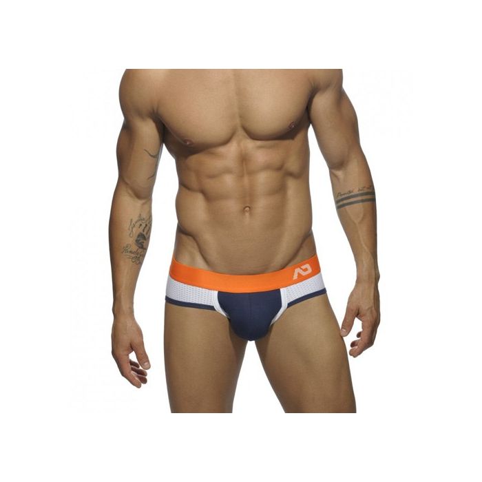 In de Contrast Mesh Bottom Brief van Addicted zul jij er zeker super lekker uitzien. Deze slip zit lekker strak en laag en heeft bovendien een open achterkant die je kontje extra lekker uit laten komen. De elastische tailleband is oranje en voorop staat het Addicted logo. De zijkanten zijn gemaakt van elastisch mesh voor een sportieve uitstraling.