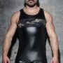 Met zijn unieke rubber look en feel is dit shirt niet alleen een eyecatcher, maar ook een gedurfde statement piece. Het licht rekbare materiaal sluit naadloos aan op je gespierde torso, waardoor al je spieren prachtig tot hun recht komen. De matte glans van het shirt accentueert je vormen en zorgt ervoor dat je er altijd op je best uitziet, of je nu aan het sporten bent of een avondje uit gaat.