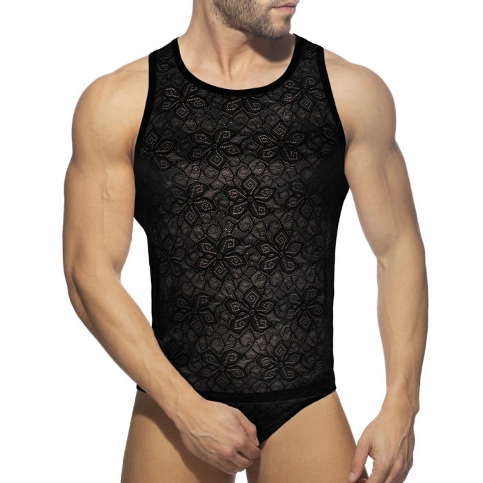 Deze tanktop is niet alleen een eyecatcher door zijn elegante zwarte kleur, maar is ook ontworpen om je koel en comfortabel te houden, zelfs tijdens de meest intensieve trainingen. Gemaakt van ademende kanten stof, biedt deze tanktop een luxe gevoel op je huid, terwijl het je helpt om je prestaties te optimaliseren.