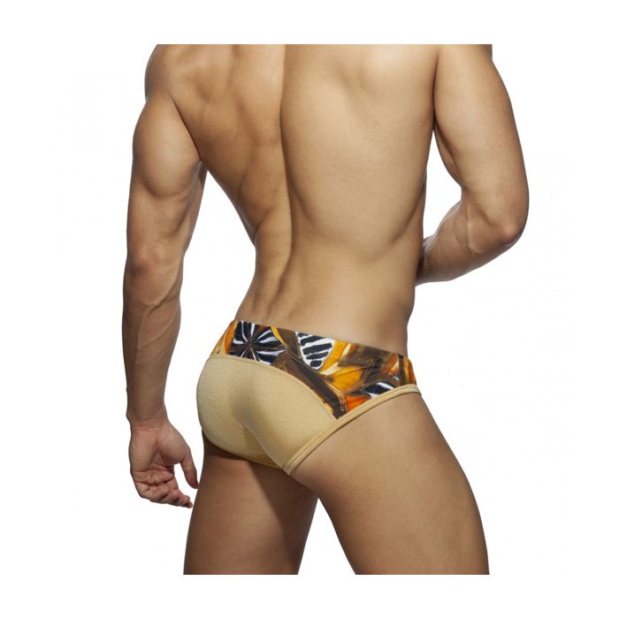 In Sahara Zwem Slip - Goud komt jouw kroonjuweel nóg voluptueuzer naar voren. Deze strakke zwem slip van Addicted is namelijk uitgerust met een uitneembaar Pack Up system. De slip is afgewerkt met een speelse print en rijgkoord in de tailleband.