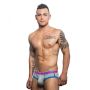 Deze limited edition Jockstrap van Andrew Christian is door de combinatie van verschillende kleuren een lust voor het oog. De jockstrap heeft een brede tailleband met het Andrew Christian logo erop, blauwe biezen en een voorgevormde pouch om een vollere voorkant te geven. De achterzijde van de jockstrap is voorzien van elastische banden die de billen een fraaie lift weten te geven. De jockstrap is gemaakt van coolflex stof dat heerlijk aanvoelt op de huid.- Merk: Andre Christian