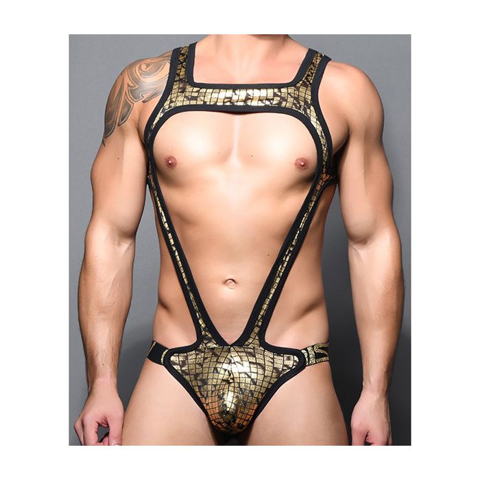 In het sexy Cubist Singlet komt jouw sexy hard body goed tot zijn recht. Deze heren body van Andrew Christian heeft een spannend harnas model met jockstrap achterkant voor easy access. De goudkleurige print maakt het singlet heerlijk extravagant.