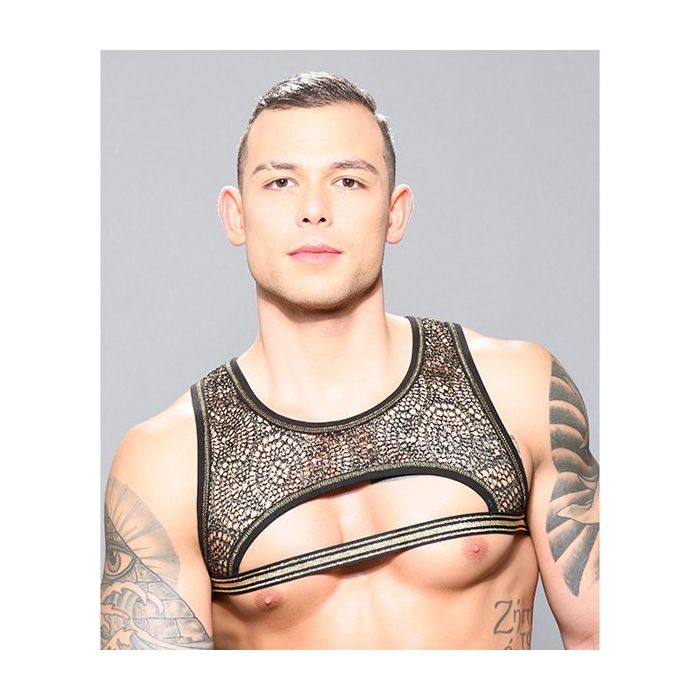 De legendes zijn waar. Het El Dorade Mesh Harnas van Andrew Christian is net zo sexy als je gehoord hebt. Misschien wel nóg sexyer! Het harnas is gemaakt van stretch mesh met een sierlijk gaten patroon. In het mesh en in de zomen is goudkleurig lurex verweven voor een glamoureuze look. In het harnas komt jouw gespierde bovenlijf extra geil tot zijn recht!