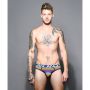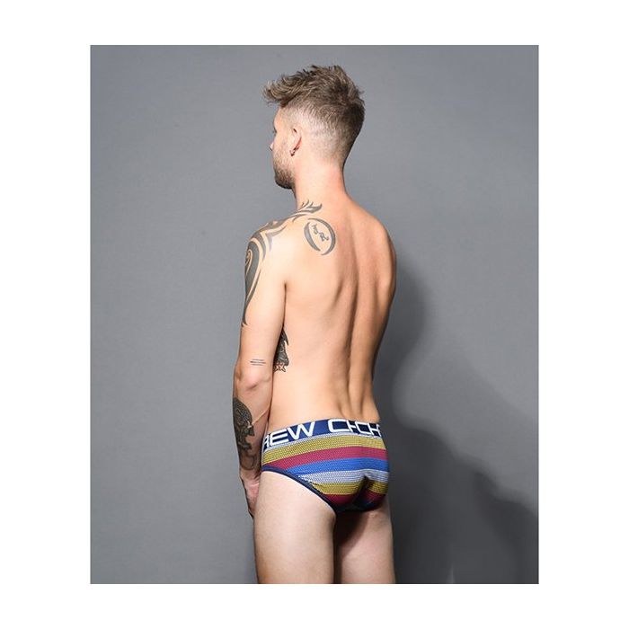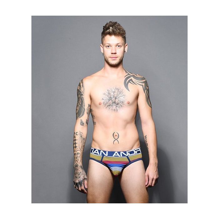 De Andrew Christian Frequency Stripe Slip heeft een Anatomsich correct gevormde Almost Naked buidel. De slip is afgewerkt met een kleurrijk strepen patroon. Iedere streep is opgebouwd uit kleine stippen.