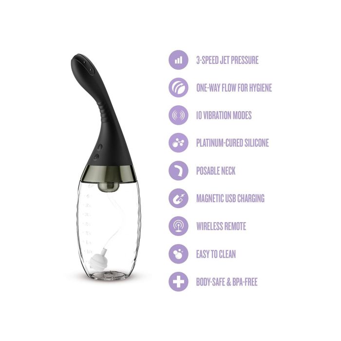 Met een aanpasbaar 3-snelheden jetsysteem en 5 precisie spuiten, kun je de spoeling volledig afstemmen op jouw wensen. Het slimme ontwerp met eenrichtingsstroom voorkomt terugstroom, zodat je altijd verzekerd bent van een schone en frisse ervaring. Met maar liefst 10 krachtige vibratiemodi helpt de Aqua Jet je lichaam te ontspannen en zorgt hij voor een grondigere reiniging. De ergonomische nek is buigzaam en past zich moeiteloos aan jouw bewegingen aan, waardoor je altijd de perfecte positie vindt voor ultiem comfort.