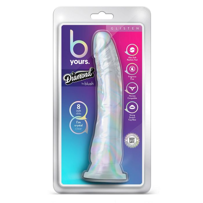 De Blush B Yours Diamond Glisten Clear is een schitterende en realistische dildo die perfect is voor zowel solo- als koppelplezier. Met een stevige zuignapbasis blijft deze dildo stevig op zijn plaats, zodat je je volledig kunt concentreren op je genot. De subtiele curve is speciaal ontworpen voor optimale G-spot stimulatie, waardoor je elke keer weer kunt genieten van intense sensaties. De heldere kleurstelling voegt een speelse dimensie toe aan je ervaring, waardoor je je eigen spel kunt observeren en nog dieper in de wereld van genot kunt duiken. Of je nu alleen speelt of samen met een partner, de Glisten is een onmisbare aanvulling op je collectie.