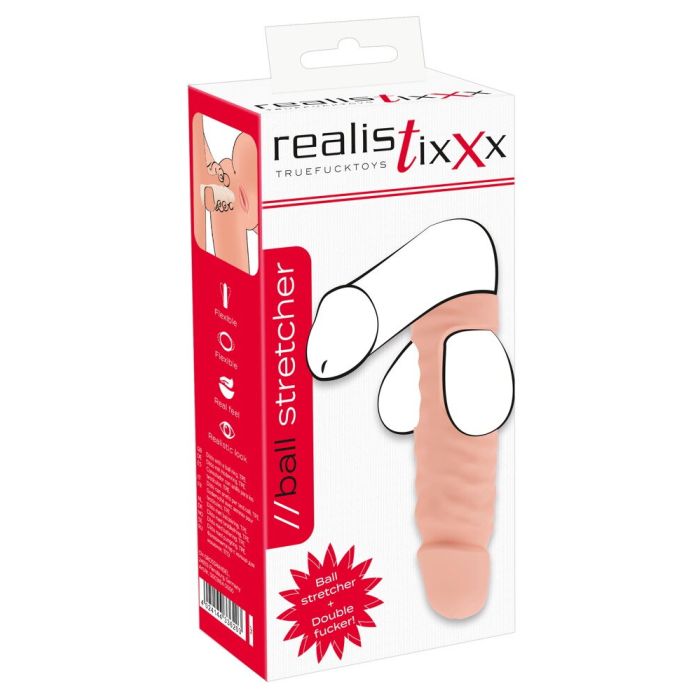 De Ball Stretcher van Realistixxx met dildo voor dubbele penetratie biedt een unieke ervaring voor liefhebbers van intense sensaties. Met de brede ring die over de testikels wordt geplaatst en de flexibele dildo die zorgt voor diepe penetratie, is dit product perfect voor het verkennen van nieuwe vormen van genot.