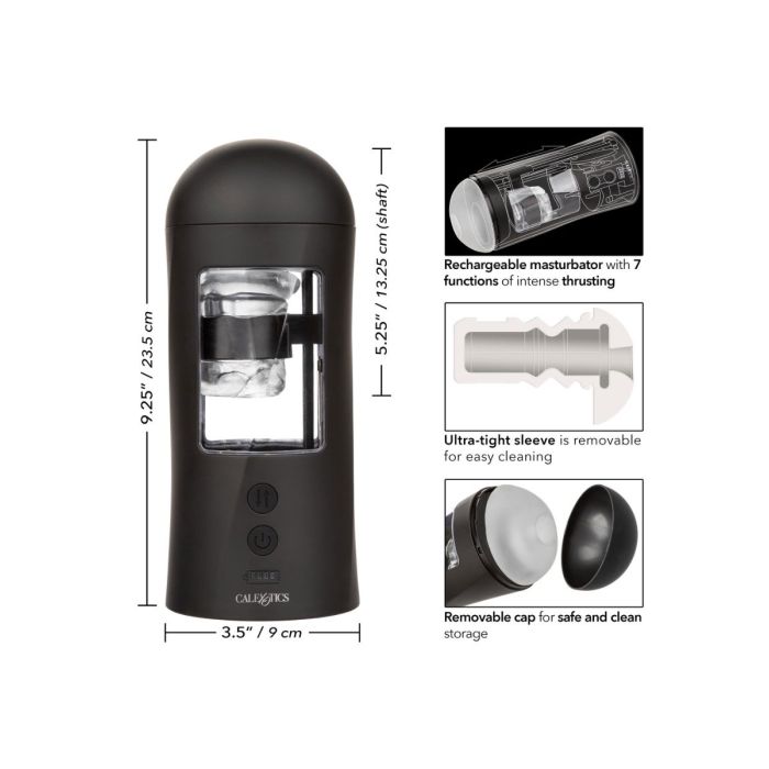 Geniet van een volautomatische stroke met deze fantastische masturbator! De masturbator beschikt over een neutrale strakke opening waarna de penis wordt omhult door een zachte sleeve. De sleeve is volledig aanpasbaar voor een optimale streelervaring. Met 7 functies kan je genieten van intense op-en-neergaande strokes. Met een eenvoudig push-button systeem kan je de snelheid naar keuze instellen. In slechts 5 uur is de masturbator volledig opgeladen om tot 60 minuten te kunnen genieten van de sensationele strokes!