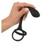 3-in-1: de anale plug met een twist! Met deze siliconen buttplug van Black Velvets zul je niet alleen genieten van een heerlijke prostaatstimulatie, maar ook van een keiharde pik die lekker lang hard blijft! De geïntegreerde cock- en ballringen worden daarom om je pik en ballen gedaan. De anaalplug heeft een verdikte kop voor gerichte stimulatie van de P-Spot. De smalle schacht van de plug gaat soepel over in het verbindingsgedeelte met de cock- en ballringen, dit gedeelte dient er tevens voor om het perineum te stimuleren.- Merk: Black Velvets