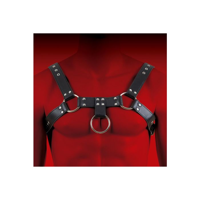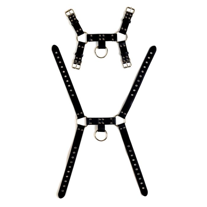 Het borstharnas is voorzien van een innovatief systeem van verstelbare banden en gespen, waardoor het eenvoudig kan worden aangepast aan de unieke lichaamsvorm en maat van de drager. Deze aanpassingsmogelijkheden zorgen ervoor dat het harnas niet alleen perfect aansluit, maar ook optimale ondersteuning biedt tijdens gebruik. Het gedurfde ontwerp, verrijkt met stijlvolle studs, voegt een aantrekkelijke esthetiek toe die de aandacht trekt. Daarnaast is het harnas uitgerust met O-vormige ringen aan zowel de voor- als achterkant, die de mogelijkheden voor verschillende fantasiespellen uitbreiden en het tot een veelzijdig en spannend accessoire maken voor avontuurlijke koppels die hun ervaringen willen verrijken.