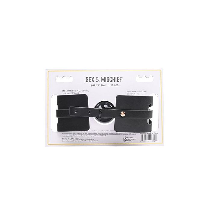 De Brat Ball Gag Sex & Mischief van het merk Sportsheets heeft een verstelbare gesp en zachte ball gag. Zo heb jij de controle over je partner. Combineer deze gag met bijpassende handboeien voor een kinky avond.