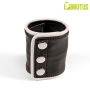 Met een hoogte van ongeveer 8,5 cm en een met leer