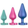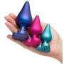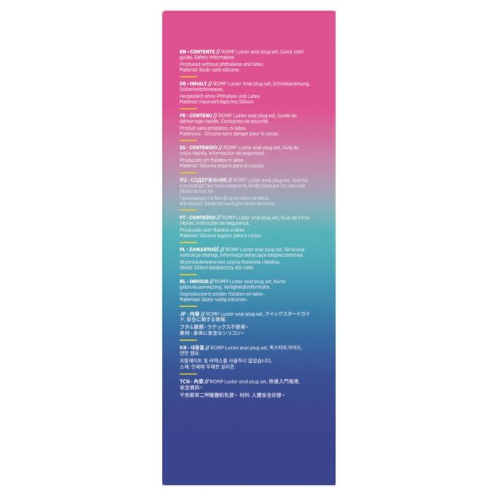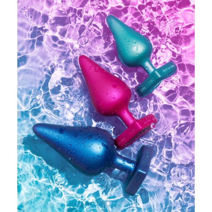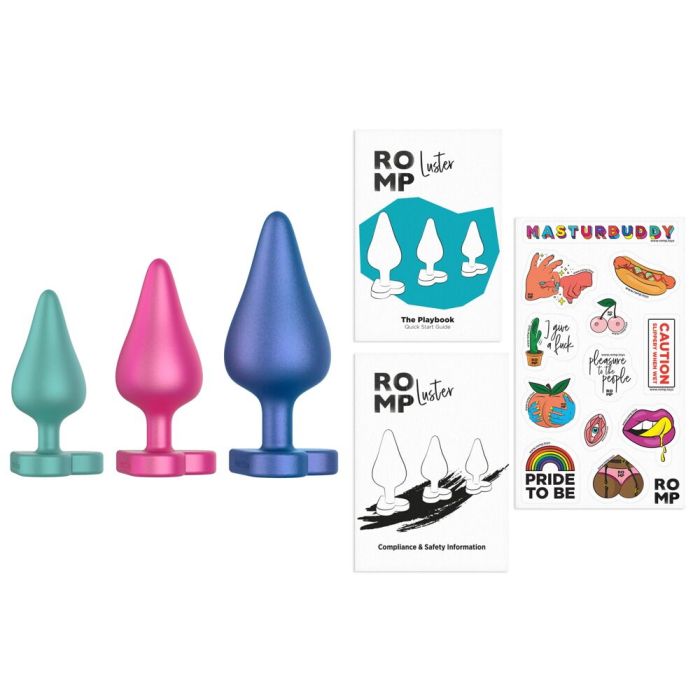 De Buttplug Set Luster van ROMP is een zorgvuldig samengestelde set die zowel beginners als ervaren gebruikers de mogelijkheid biedt om anale stimulatie op een veilige en plezierige manier te verkennen. Deze set bevat drie anaalpluggen, elk met een conische, gladde top die het inbrengen vergemakkelijkt en zorgt voor een comfortabele ervaring. De trendy kleuren en de elegante metallic afwerking maken deze plugs niet alleen functioneel, maar ook een lust voor het oog, waardoor ze een stijlvolle toevoeging zijn aan elke slaapkamer. De hartvormige stop is een doordachte veiligheidsfunctie die ervoor zorgt dat de plugs op hun plaats blijven en dat gebruikers met een gerust hart kunnen genieten van hun ervaring.