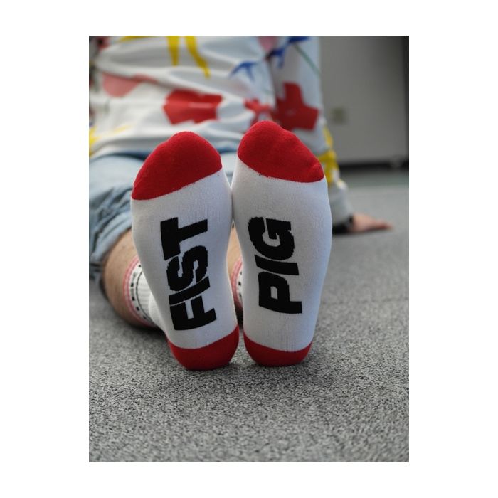 Maak je klaar om je stijl naar een hoger niveau te tillen met de Mister B Sport Sokken Fist Pig in wit met rode accenten! Deze gedurfde sokken zijn perfect voor de avontuurlijke zielen die geen grenzen kennen en willen opvallen. Met 'FIST' op de ene zool en 'PIG' op de andere, zijn ze ontworpen om je identiteit te benadrukken en een statement te maken. De dikke, ademende stof zorgt ervoor dat je voeten de hele dag comfortabel blijven, terwijl de opvallende rode accenten bij de teen, hiel en enkelrand een speelse, ondeugende twist geven. Het iconische Mister B-logo op de boord voegt een extra vleugje flair toe, waardoor je 'filthy piggy pride' direct naar je voeten wordt gebracht. Dus waar wacht je nog op? Trek je gear aan, til die benen op en laat deze sokken voor je spreken!