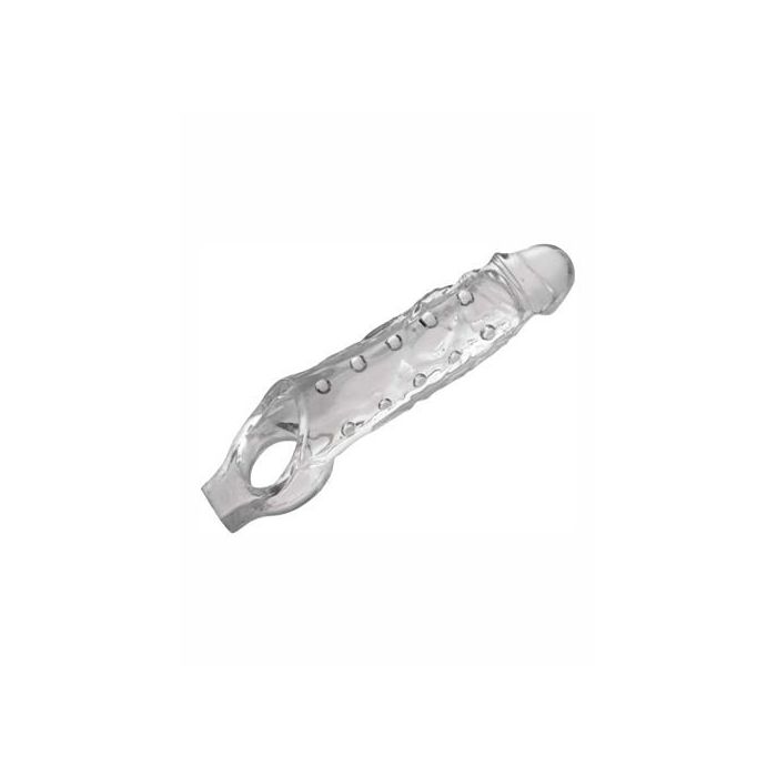 Schuif als man je lid in deze Grote transparante penisverlenger en geniet van de voordelen van de extra omtrek en lengte. Je bent hiermee in staat om langer een erectie vast te houden en je partner dieper vaginaal of anaal te penetreren. Met deze Grote transparante penisverlenger maakt het zelfs niet uit of je lid hard of slap is. Deze imposante penishuls is altijd in vorm en klaar voor actie. De schacht is bekleed met noppen voor extra prikkelingen bij elke stoot. Het transparante ontwerp laat zien wat je allemaal in huis hebt tijdens je erotische samenzijn. Eigenschappen Grote transparante penisverlenger: Materiaal: TPR Kleur: transparant Afmetingen: circa 16,6 cm lengte en 4,4 cm diameter op het breedste punt