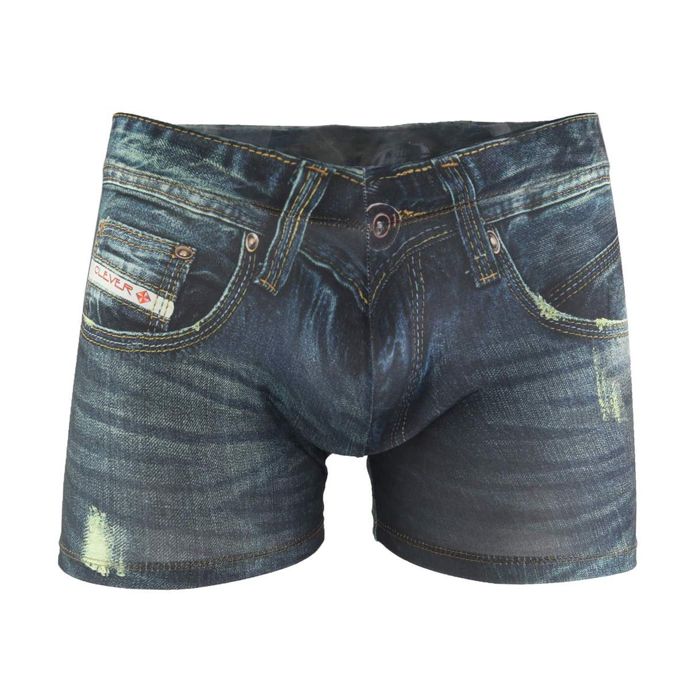 Voor de echte spijkerbroeken fans heeft het merk Clever de Denim Jeans Boxer - Blue in het leven geroepen. In deze strakke boxershort gemaakt van zacht en luchtig materiaal draag jij zelfs onder je spijkerbroek een stoere denim jeans met een verwassen en gedragen look. De boxer zit lekker strak en heeft een lage tailleband voor een sexy pasvorm.