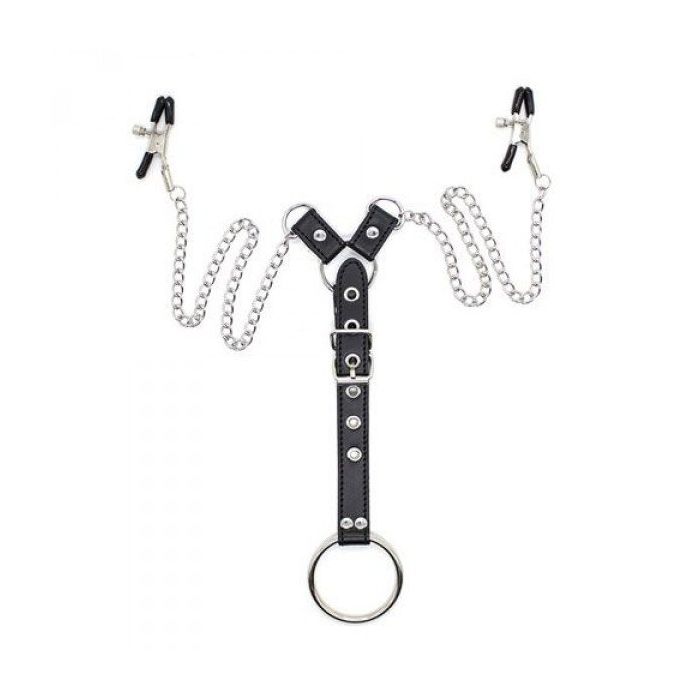 Voor elke bdsm liefhebber is dit een geweldig geil speeltje die jouw tepels zullen pijnigen en je penis een keiharde erectie zullen geven. De tepelklemmen zijn verstelbaar met een handig draaisysteem. Het soepele kunstleer in het midden is verstelbaar voor een juiste pasvorm. Geniet samen of solo van deze cockring met tepelklemmen.- Merk: Toyz4Lovers