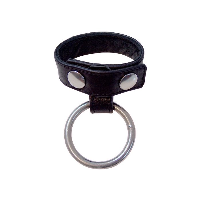 Verstelbare Leren Cockstrap met Penisring - Zwart