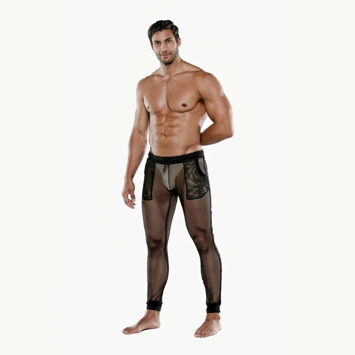 Het is tijd om je super sexy te voelen met het dragen van de Code 22 See Me Jogger - Zwart. De broek is gemaakt van een semi transparante mesh stof waardoor de broek aangenaam draagt. Het mesh materiaal heeft een fijne gaatjes structuur, waar jij lichtjes doorheen schemert. De afslankende signature tailleband is voorzien van een handige rijgveter.