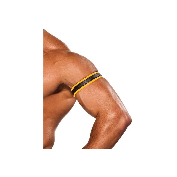 Laat je spierballen nog beter uitkomen met deze stoere Colt Biceps Band - Zwart / Geel. De bicepsband is gemaakt van soepel leer welke tijdens het dragen steeds soepeler zal worden door je lichaamswarmte. De band is verstelbaar met drie stevige drukknopen dus het betreft een one size fits most model. Door de fetish kleur zal jij je fetish kenbaar maken hoe makkelijk is dat! Combineer het tijdens een feestje met een leren short of jockstring voor een kinky look. De Colt Biceps Band - Zwart / Geel maakt elke outfit compleet af.