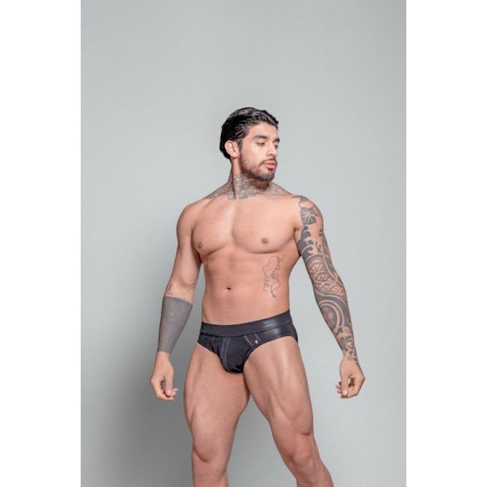 De Dale Mas Biker Jock Brief in het zwart is de perfecte combinatie van stijl en comfort voor de moderne man. Deze klassieke jock slip heeft een lage en brede tailleband die gemaakt is van zacht elastiek, wat zorgt voor een perfecte pasvorm zonder in te boeten op comfort. Het opvallende Dale Mas logo op de tailleband geeft het geheel een trendy uitstraling. De randen onderaan zijn mooi afgewerkt met een zwarte en gekleurde zoom, wat een extra touch van flair toevoegt. De pouch is ontworpen met jouw comfort in gedachten, zodat je je zelfverzekerd en sexy voelt, of je nu een avondje uit gaat of gewoon thuis ontspant. Met deze jock brief ben je helemaal klaar voor een spannende en erotische avond!