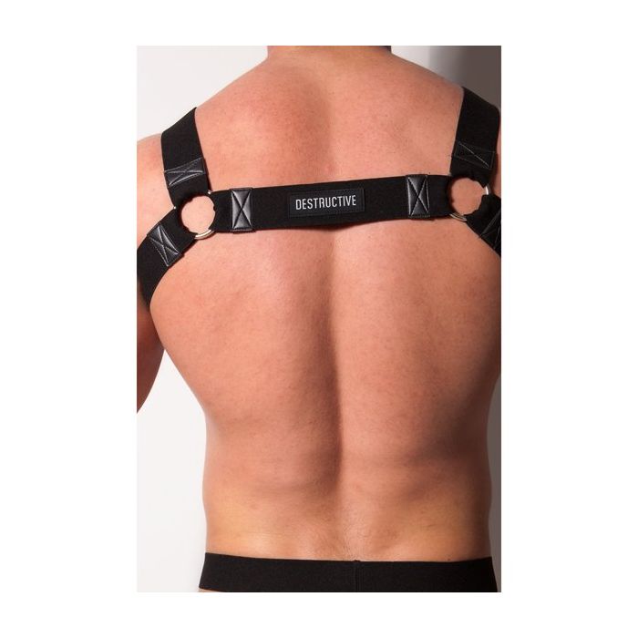 Het Destructive Rivets Harnas laat jouw gespierde bovenlijf extra sexy uitkomen. De rekbare banden zitten strak rond de schouders en accentueren de spieren.