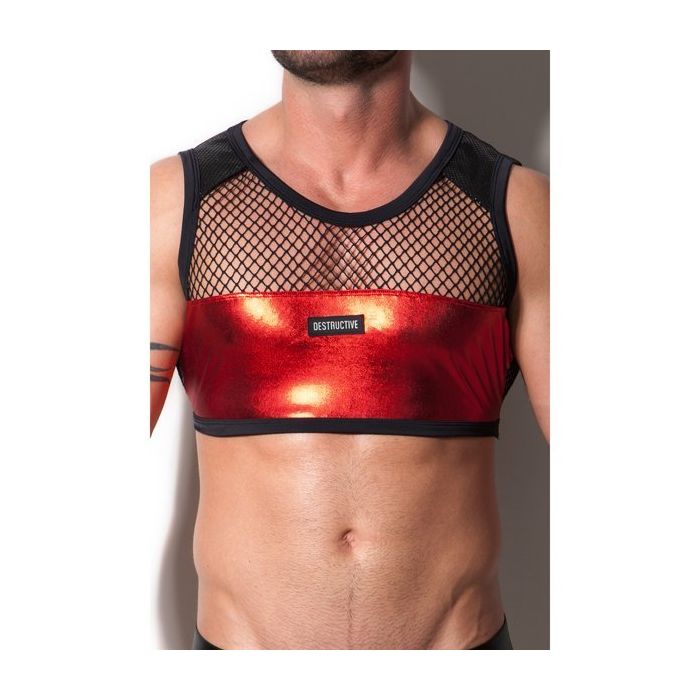 Met de Red With Black Crop Top van Destructive geniet jij van het comfort van een tank top en geaccentueerde schouders, zoals bij een harnas.