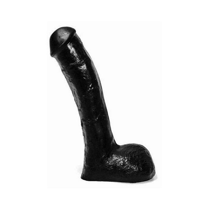 Realistische, zwarte dildo met geaderde schacht, dikke eikel en stevige balzak. In het midden zit een lichte buiging zodat hij alle plezierige plekjes goed kan stimuleren. Deze fijn gevormde dildo van All Black is gemaakt van vinyl. De meeste heren (en ook dames) prefereren de zachtere vinyl dildo's boven de rubberen dildo's. Dildo’s die gemaakt zijn van vinyl hebben namelijk een aantal voordelen: ze zijn goed bestand tegen glijmiddelen op olie- of vetbasis, daarnaast zijn ze geurloos en gemakkelijk te reinigen met, bij voorkeur, een toycleaner.