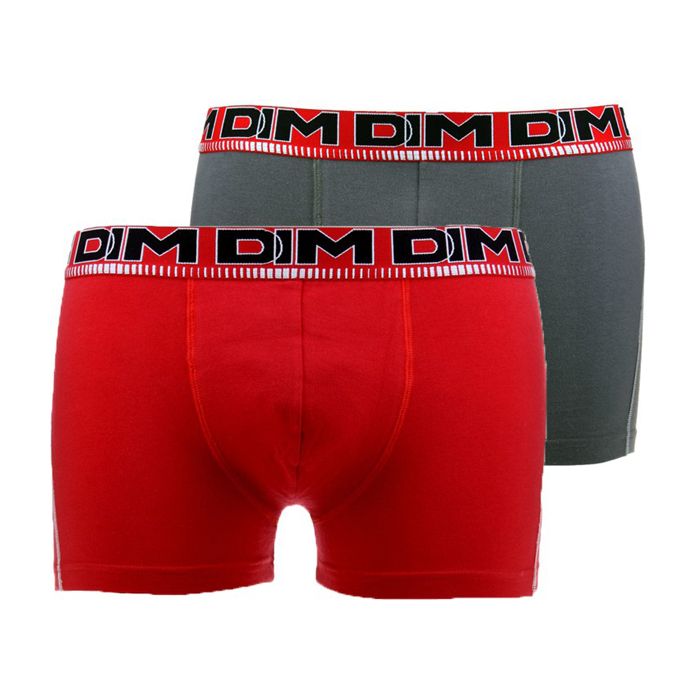 De sexy strakke DIM 3D Flex Dynamic Boxershort 2 Pack Rood is een set met een rode en een grijze boxer.