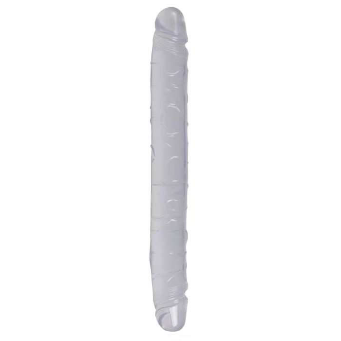 Met een uitpuilende eikel aan elk uiteinde, biedt deze dildo genot voor twee, waardoor je samen met je partner kunt genieten van een intieme en opwindende tijd. De gladde afwerking en het stevige materiaal zorgen ervoor dat elke beweging intens voelbaar is, terwijl de transparante uitstraling een vleugje luxe toevoegt aan je slaapkamer.