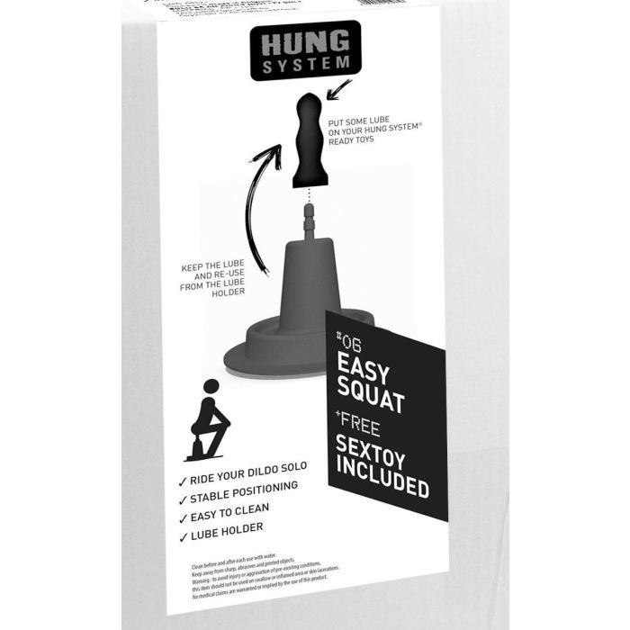 De Easy Squat is een stevige basis van Hung System waarop je alle dildo's of buttplugs uit de Hung System serie gemakkelijk kunt bevestigen. De Easy Squat wordt geleverd met dildo Winky van 27,5 cm lang zodat je direct genot kunt beleven van dit unieke systeem! Ben je uitgekeken op dildo Winky? Geen probleem, ontkoppel eenvoudig de dildo en vervang deze uit één van de vele buttplugs of dildo's van Hung System!
