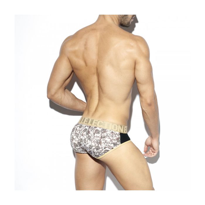 De ES Collection Baroque Wonderbrief - Gold doet echt wonderen voor jouw mannelijke vorm. Deze comfortabele slip zit heerlijk strak en heeft een lage tailleband. Het design is erg stijlvol met de zwarte en gouden kleurvlakken en de levendige barok print.