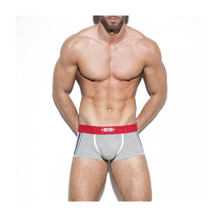 De Basic Stripes Boxer is een stijlvolle basic uit de ES Collection. Deze grijze boxershort is gemaakt van zacht en soepel modal voor een hoog draagcomfort en een strakke pasvorm. De elastische tailleband is opvallend rood en voorzien van het ES logo en de tekst ES Collection. Langs de comfortabele pouch lopen witte zomen en op de heupen zijn sportieve, blauwe strepen aangebracht in een stijlvol en kleurrijk design.