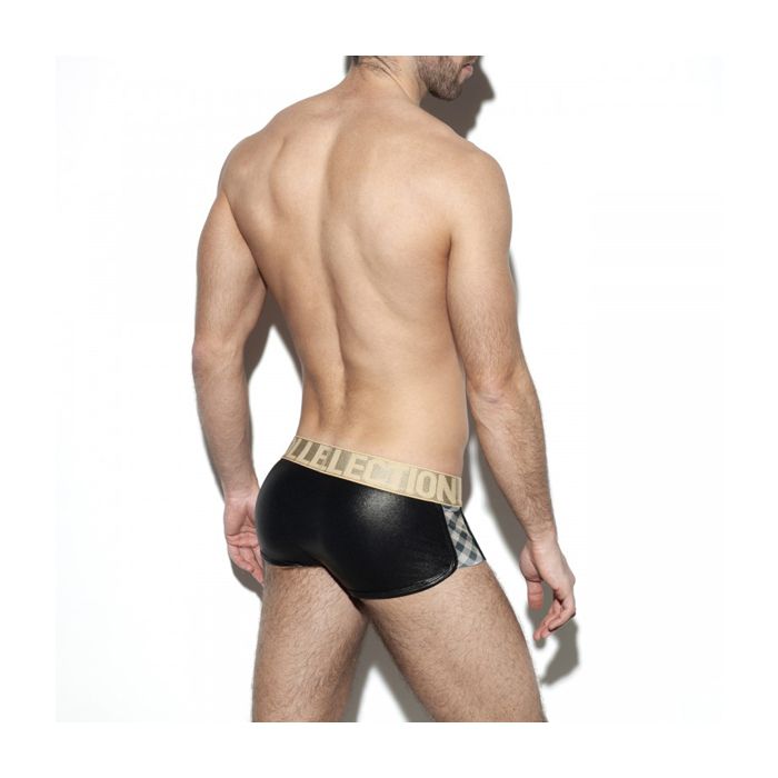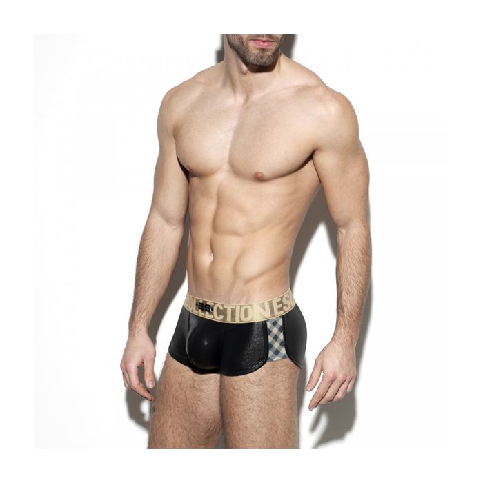 Ga voor een super sexy look met de Squares Gold Trunk van ES Collection. Deze strakke en lage boxershort is gemaakt van glanzend materiaal waardoor jouw mannelijk vormen extra goed zichtbaar zijn. En is dat een PushUp Technology systeem in de buidel, of ben je gewoon heel blij me te zien?