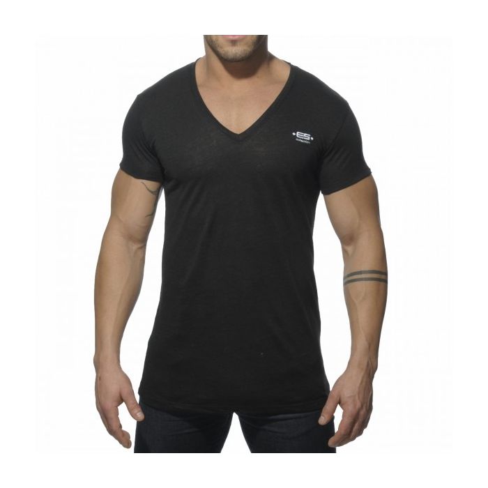 ES Linnen V Neck T-Shirt Zwart OP=OP!