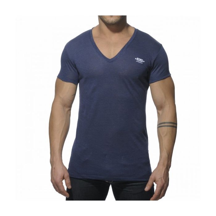 ES Linnen V Neck T-Shirt Navy OP=OP!