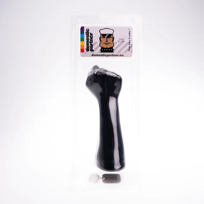 Maak kennis met de zwarte vinyl gebalde vuist van het populaire merk Domestic, een waar meesterwerk dat in België is vervaardigd. Deze opvallende dildo is niet alleen een lust voor het oog, maar ook een perfect hulpmiddel voor diegenen die op zoek zijn naar intense anale stimulatie. Met een lengte van 26 cm en een breedste punt van 9,4 cm biedt deze vuist een ongeëvenaarde ervaring die je zintuigen zal prikkelen. Of je nu een beginner bent of een ervaren gebruiker, deze vuist zal je zeker in vervoering brengen. Het hoogwaardige vinyl is vrij van ftalaten, wat betekent dat je je geen zorgen hoeft te maken over schadelijke stoffen, en het is volledig veilig voor je lichaam.
