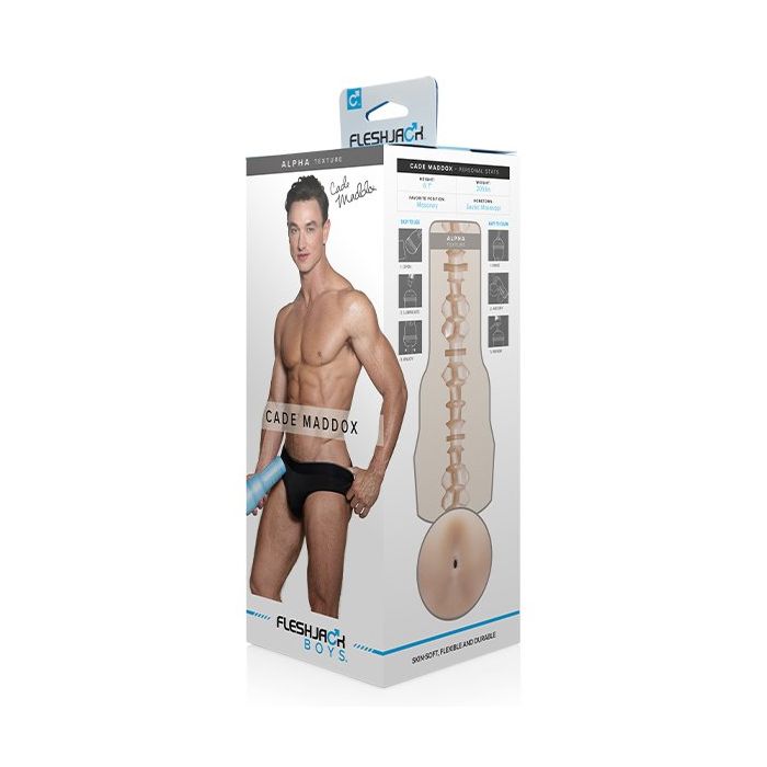 Pornoster Cade Maddox heeft model gestaan voor deze heerlijke Fleshjack masturbator. De masturbator bestaat uit een harde behuizing met daarin een heerlijk zachte flexibele sleeve gemaakt van SuperSkin materiaal dat aanvoelt als een echte huid. Dit maakt de beleving zeer realistisch. De binnenkant van de sleeve is voorzien van stimulerende ribbels en noppen. Haal de sleeve na gebruik uit de koker zodat je deze grondig kunt schoonmaken met water en een milde zeep of één van onze speciale toycleaners. Droog de sleeve daarna goed af alvorens je deze weer terug in de koker plaatst. Tip: voor een soepel beleving is het aan te raden om voldoende glijmiddel (waterbasis) te gebruiken.