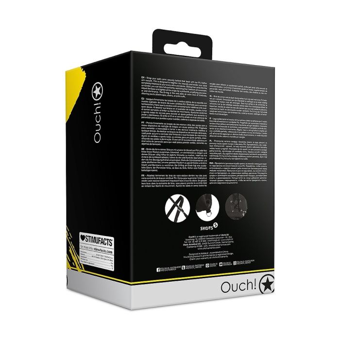 Met onze PU lederen arm restraint van Ouch! kun je de controle over je slaaf volledig overnemen. Door de armen stevig achter de rug vast te binden, wordt je slaaf volledig hulpeloos en kun je de intensiteit verhogen. De verstelbare veters en riemen zorgen voor een geweldige pasvorm en versterken je macht en dominantie. De D-ring aan het einde voegt een extra niveau van kinkiness toe, waardoor je touwen, kettingen of enkelboeien kunt bevestigen. Met deze armbinder ben je verzekerd van een spannende en kinky ervaring.